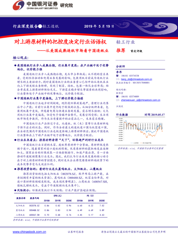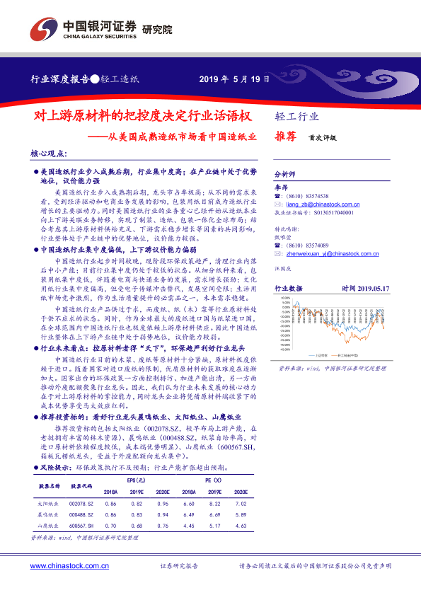 【银河证券】【20190519】从美国成熟造纸市场看中国造纸业:对上游原材料的把控度决定行业话语权-45页