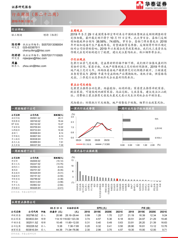 【华泰证券】【20190602】20190602-华泰证券-轻工制造行业周报(第二十二周)-20页
