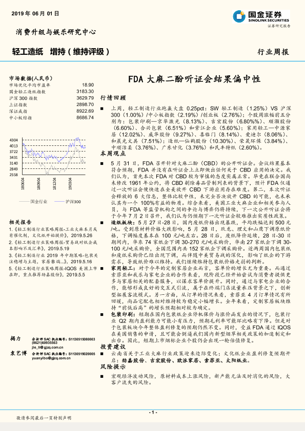 【国金证券】【20190601】20190601-国金证券-轻工造纸行业周报:FDA大麻二酚听证会结果偏中性-28页