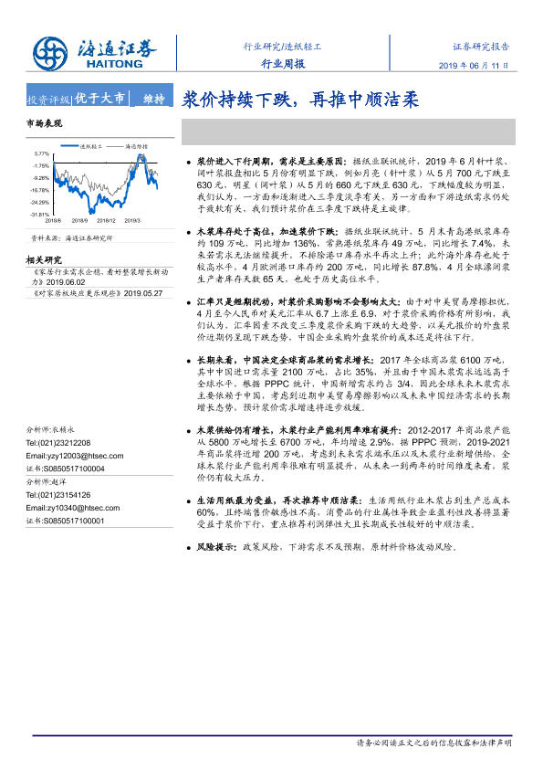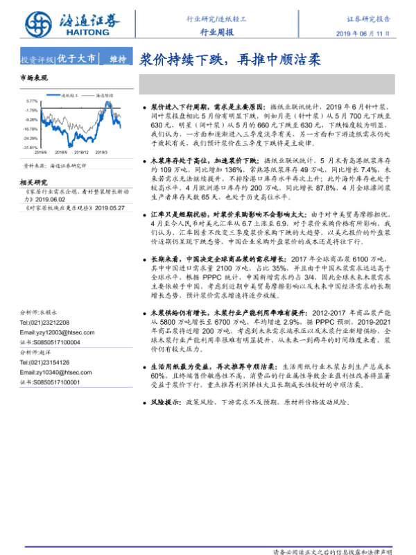 【海通证券】【20190611】20190611-海通证券-造纸轻工行业周报:浆价持续下跌,再推中顺洁柔-6页