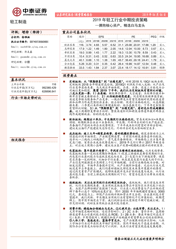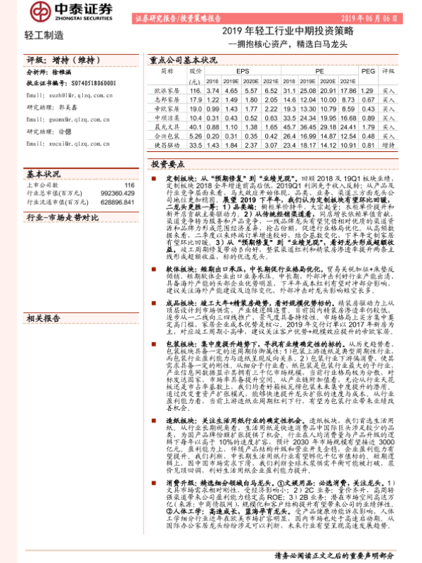 【中泰证券】【20190606】2019年轻工行业中期投资策略:拥抱核心资产,精选白马龙头-63页