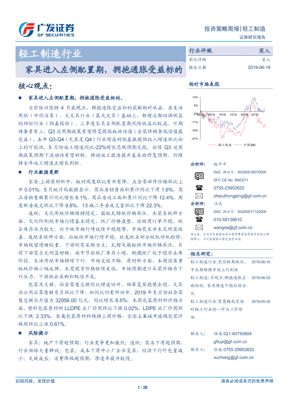 【广发证券】【20190616】轻工制造行业:家具进入左侧配置期,拥抱通胀受益标的-28页