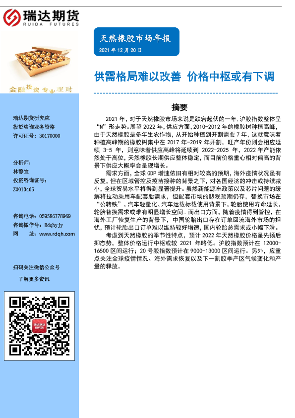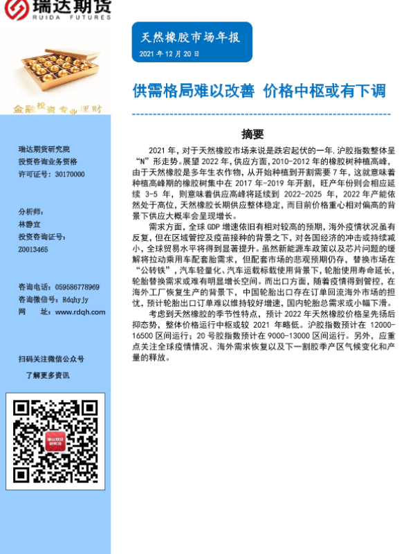 【瑞达期货】【20211220】天然橡胶市场年报:供需格局难以改善,价格中枢或有下调-19页