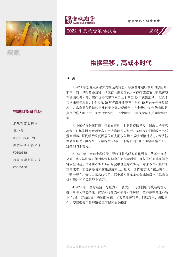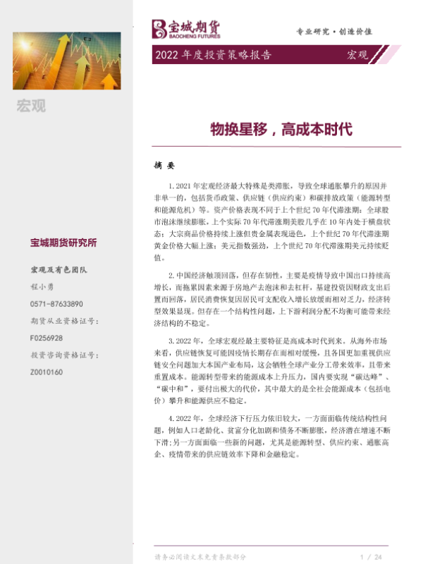 【宝城期货】【20220105】宏观2022年度投资策略报告:物换星移,高成本时代-30页