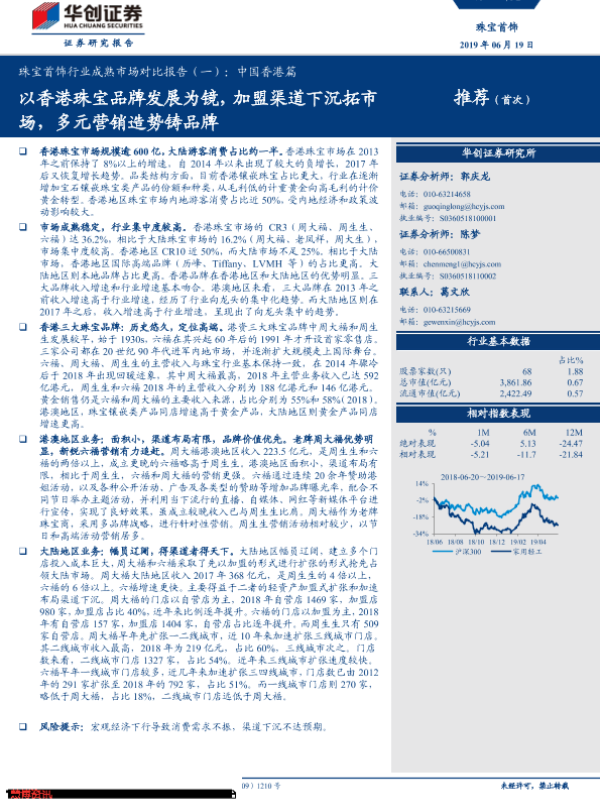 【华创证券】【20190619】珠宝首饰行业成熟市场对比报告(一):中国香港篇-以香港珠宝品牌发展为镜,加盟渠道下沉拓市场,多元营销造势铸品牌-28页