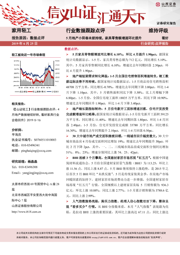 【山西证券】【20190625】20190625-山西证券-家用轻工行业数据跟踪点评:5月地产小阳春未能持续,家具零售额增速环比提升-5页