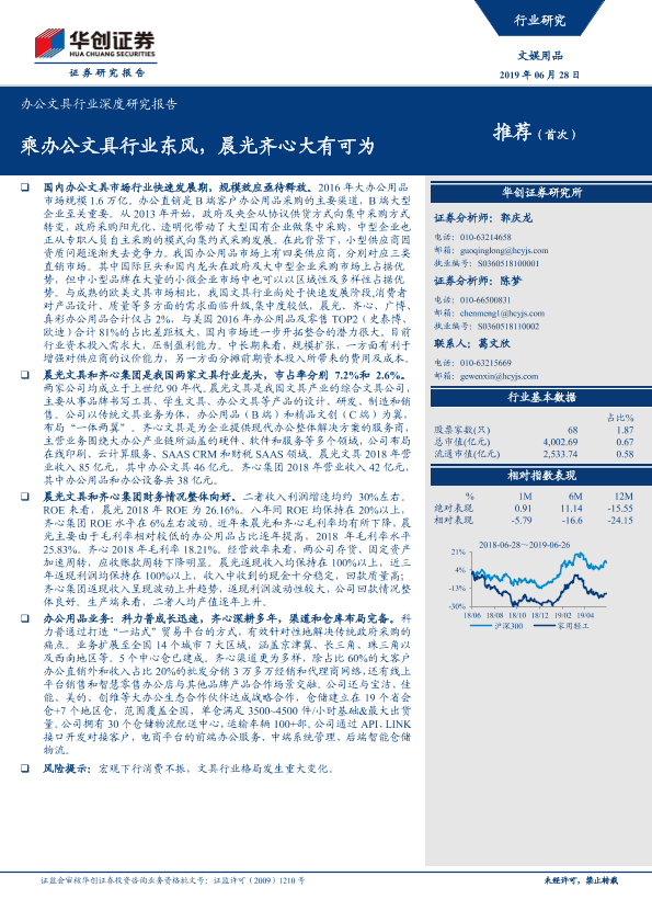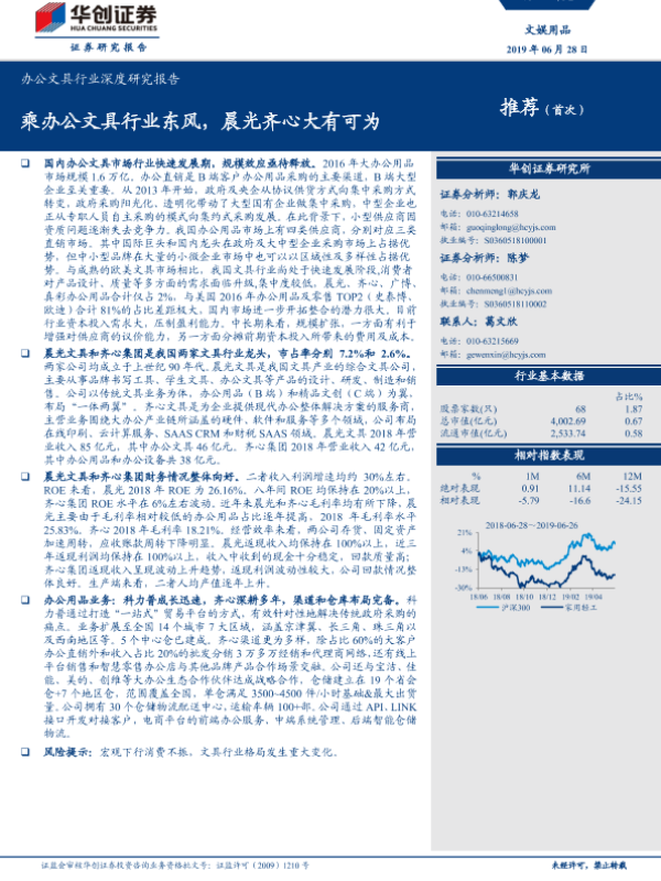 【华创证券】【20190628】20190628-华创证券-办公文具行业深度研究报告:乘办公文具行业东风,晨光齐心大有可为-31页