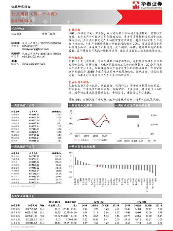 【华泰证券】【20190630】20190630-华泰证券-轻工制造行业周报(第二十六周)-12页