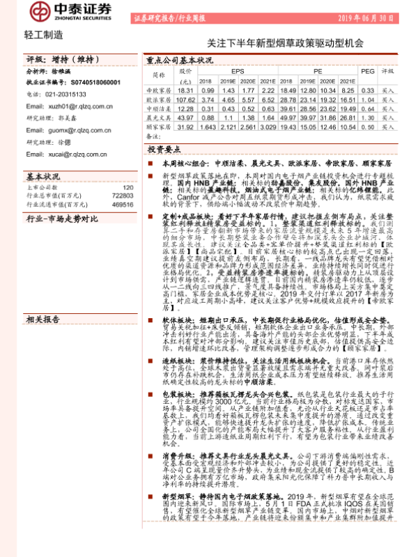 【中泰证券】【20190630】20190630-中泰证券-轻工制造行业周报:关注下半年新型烟草政策驱动型机会-24页