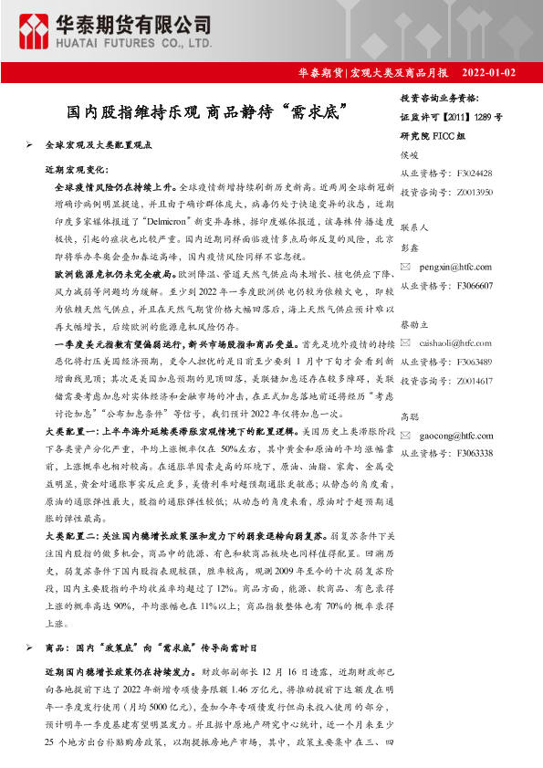 【华泰期货】【20220102】宏观大类及商品月报:国内股指维持乐观,商品静待“需求底”-20页