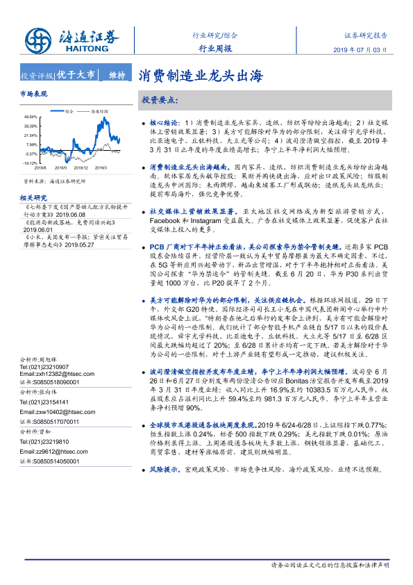 【海通证券】【20190703】20190703-海通证券-综合行业周报:消费制造业龙头出海-10页