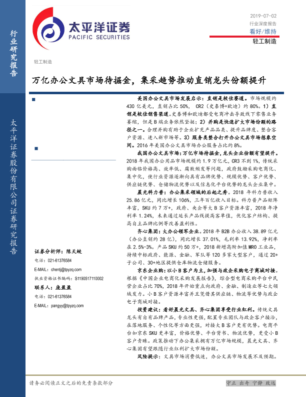 【太平洋证券】【20190702】轻工制造:万亿办公文具市场待掘金,集采趋势推动直销龙头份额提升-37页