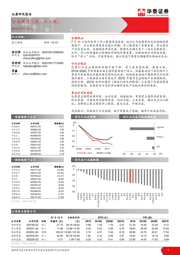 【华泰证券】【20190714】20190714-华泰证券-轻工制造行业周报(第二十八周)-12页