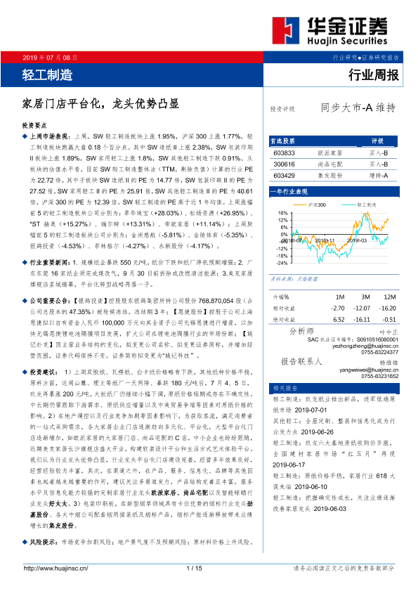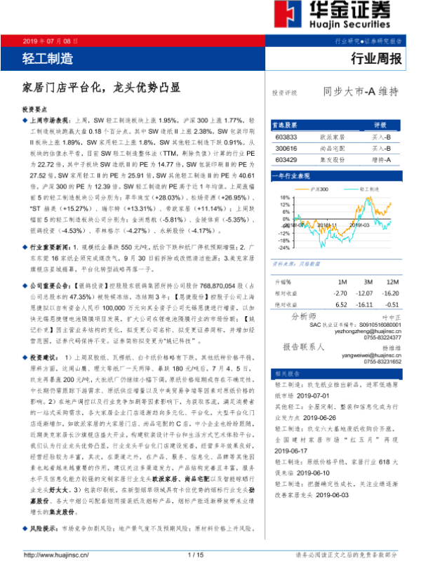 【华金证券】【20190708】20190708-华金证券-轻工制造行业周报:家居门店平台化,龙头优势凸显-15页