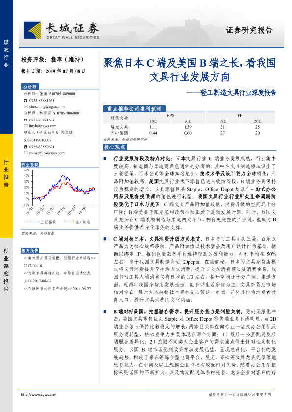 【长城证券】【20190708】20190708-长城证券-轻工制造文具行业深度报告:聚焦日本C端及美国B端之长,看我国文具行业发展方向-36页