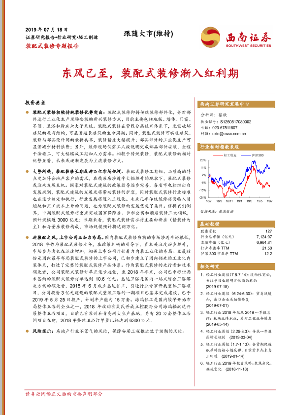 【西南证券】【20190718】装配式装修专题报告:东风已至,装配式装修渐入红利期-23页