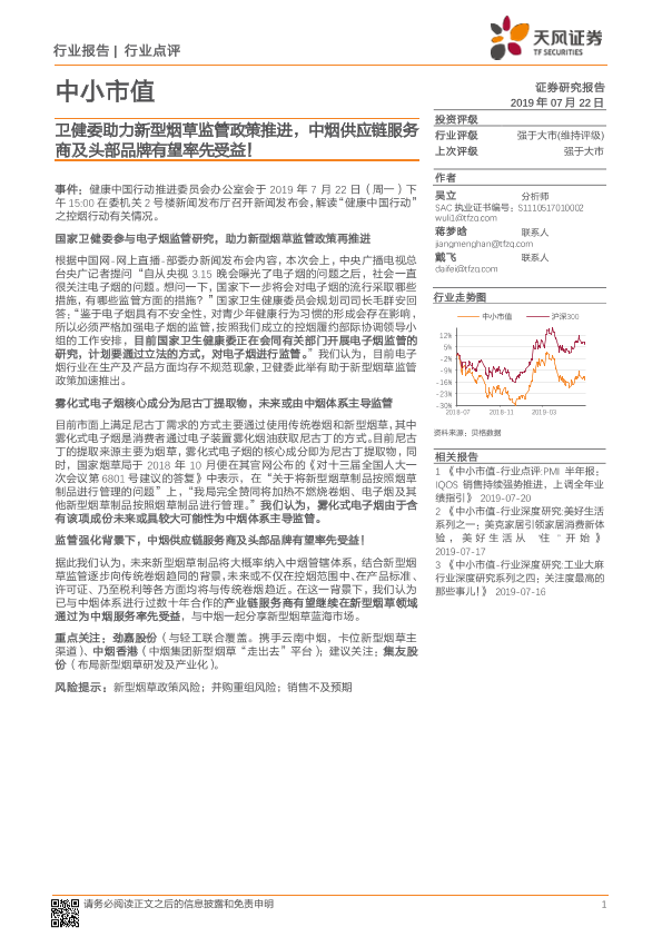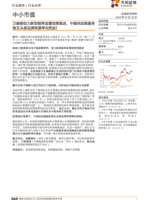 【天风证券】【20190722】卫健委助力新型烟草监管政策推进,中烟供应链服务商及头部品牌有望率先受益!-2页