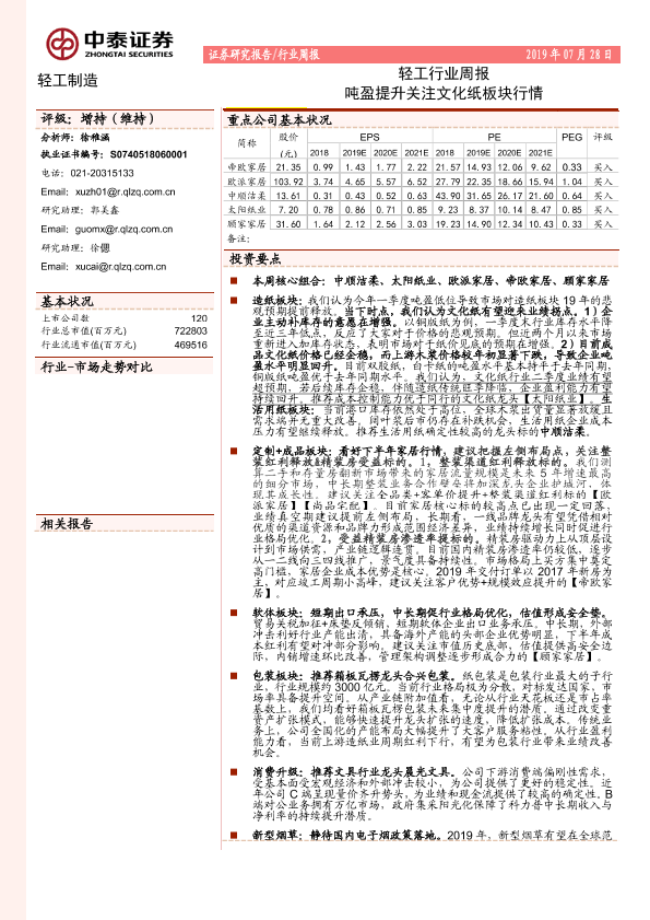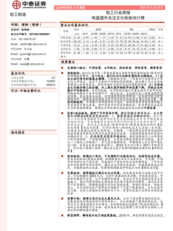【中泰证券】【20190728】20190728-中泰证券-轻工行业周报:吨盈提升关注文化纸板块行情-14页