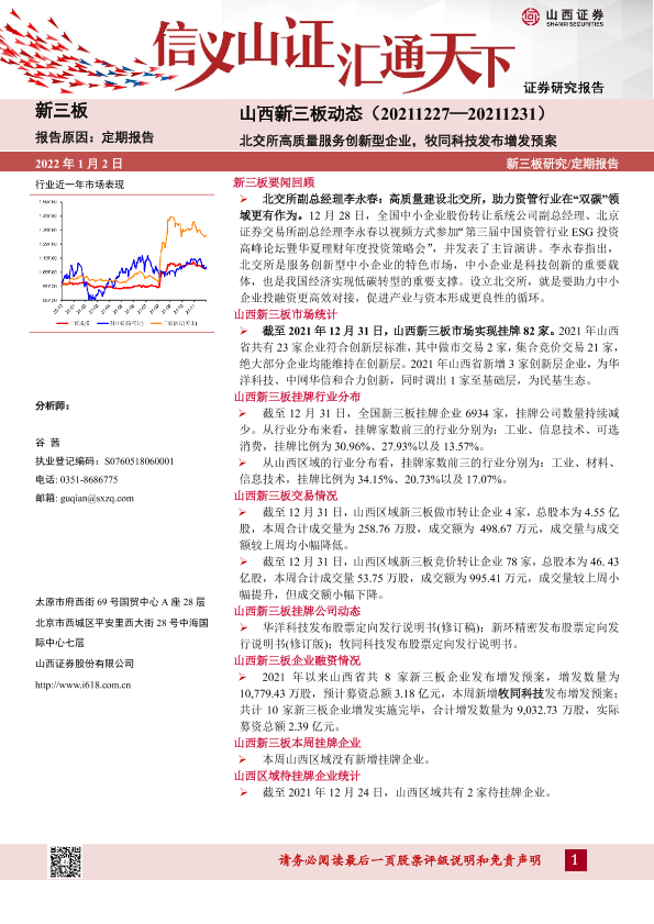 【山西证券】【20220102】山西新三板动态:北交所高质量服务创新型企业,牧同科技发布增发预案-15页