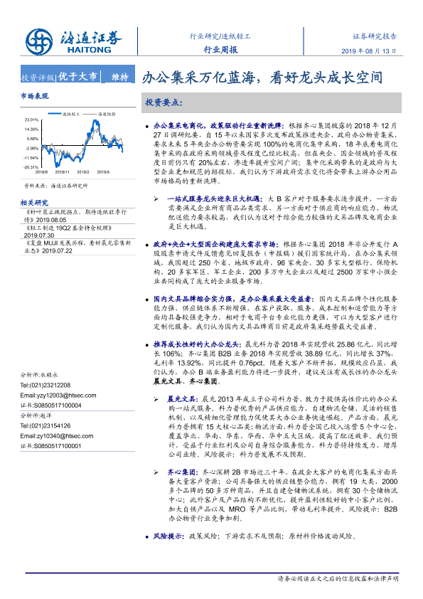 【海通证券】【20190813】20190813-海通证券-造纸轻工行业周报:办公集采万亿蓝海,看好龙头成长空间-6页