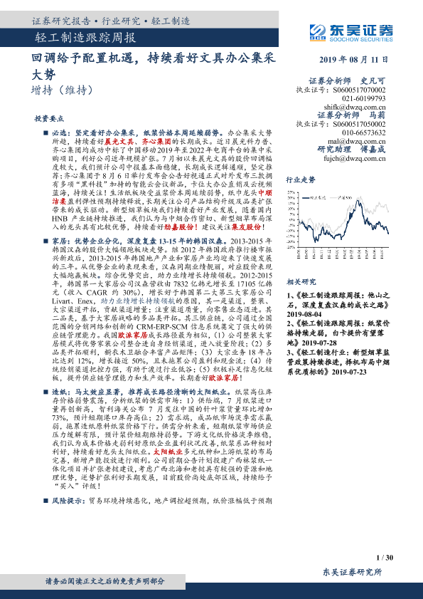 【东吴证券】【20190811】轻工制造跟踪周报:回调给予配置机遇,持续看好文具办公集采大势-30页