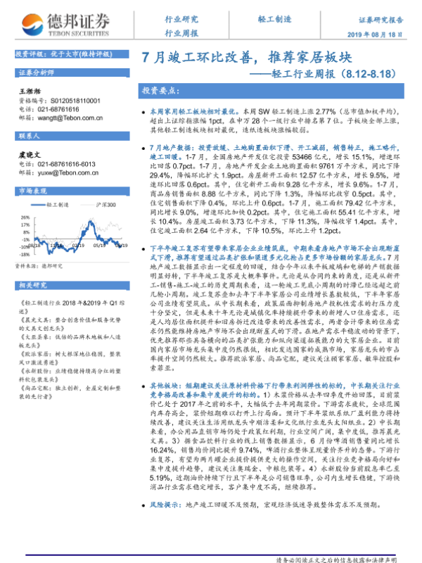 【德邦证券】【20190818】20190818-德邦证券-轻工行业周报:7月竣工环比改善,推荐家居板块-5页