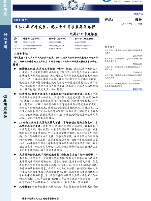 【国泰君安证券】【20190823】日本文具百年发展,龙头企业寻求差异化路径-22页