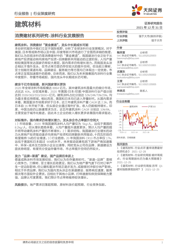 【天风证券】【20211231】建筑材料行业消费建材系列研究:涂料行业发展报告-30页