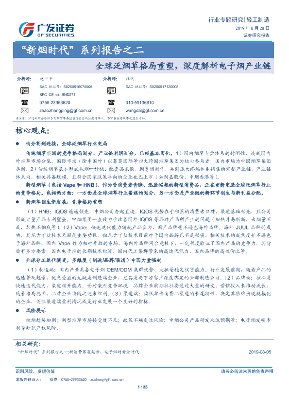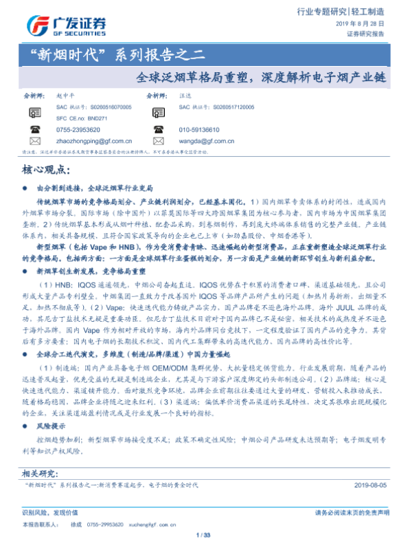 【广发证券】【20190828】20190828-广发证券-“新烟时代”系列报告之二:全球泛烟草格局重塑,深度解析电子烟产业链-33页