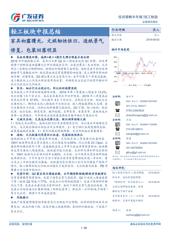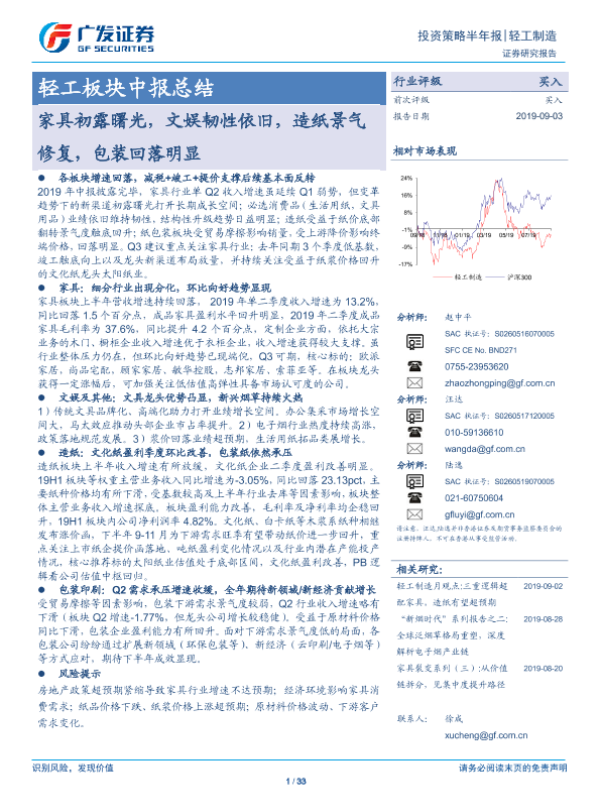 【广发证券】【20190903】轻工板块中报总结:家具初露曙光,文娱韧性依旧,造纸景气修复,包装回落明显-33页