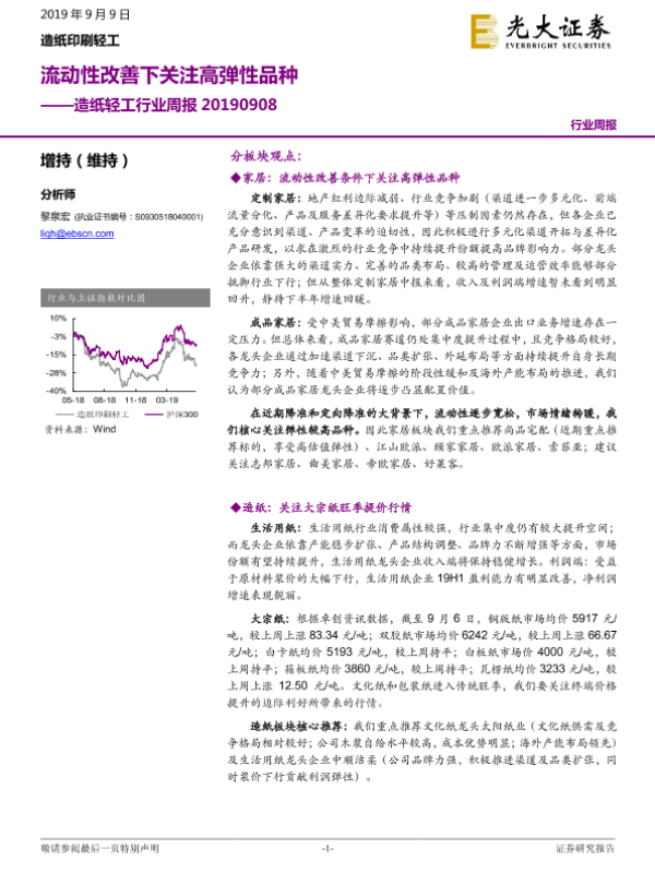 【光大证券】【20190908】造纸轻工行业周报:流动性改善下关注高弹性品种-22页