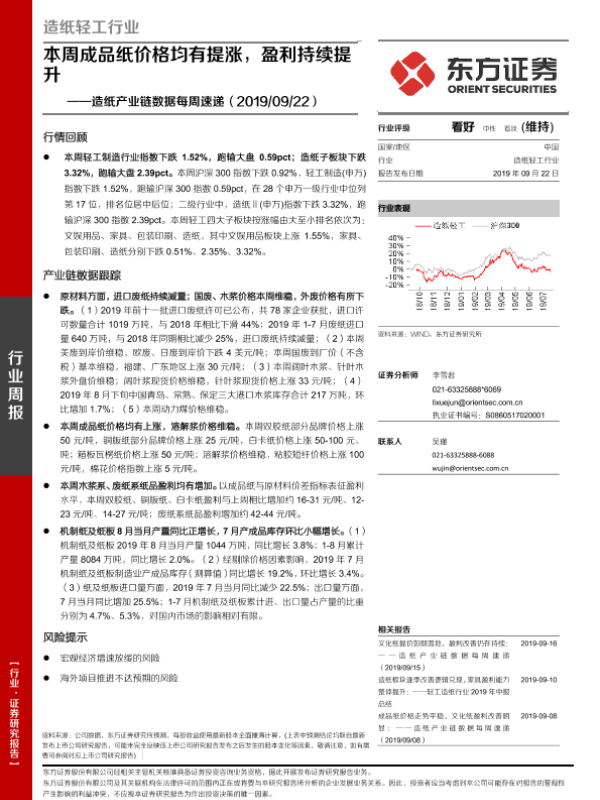 【东方证券】【20190922】造纸产业链数据每周速递:本周成品纸价格均有提涨,盈利持续提升-14页