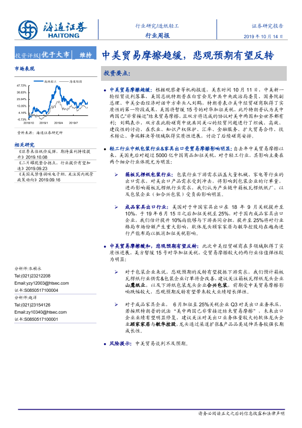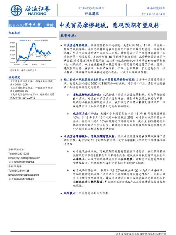 【海通证券】【20191014】20191014-海通证券-造纸轻工行业周报:中美贸易摩擦趋缓,悲观预期有望反转-6页