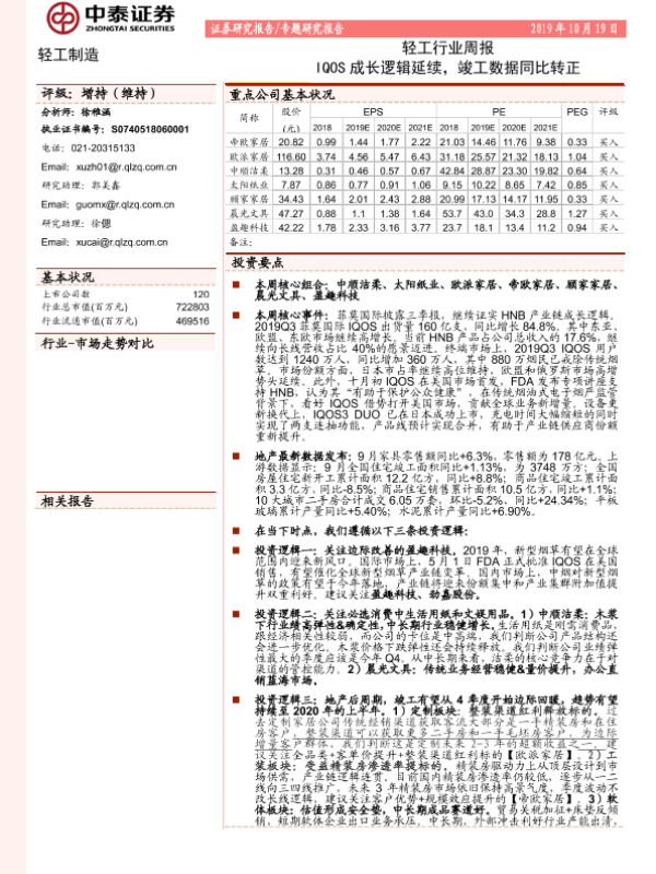 【中泰证券】【20191019】20191019-中泰证券-轻工行业周报:IQOS成长逻辑延续,竣工数据同比转正-18页