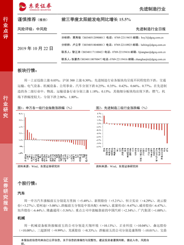 【东莞证券】【20191022】20191022-东莞证券-先进制造行业日报:前三季度太阳能发电同比增长15.5%-5页