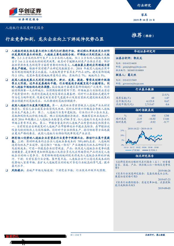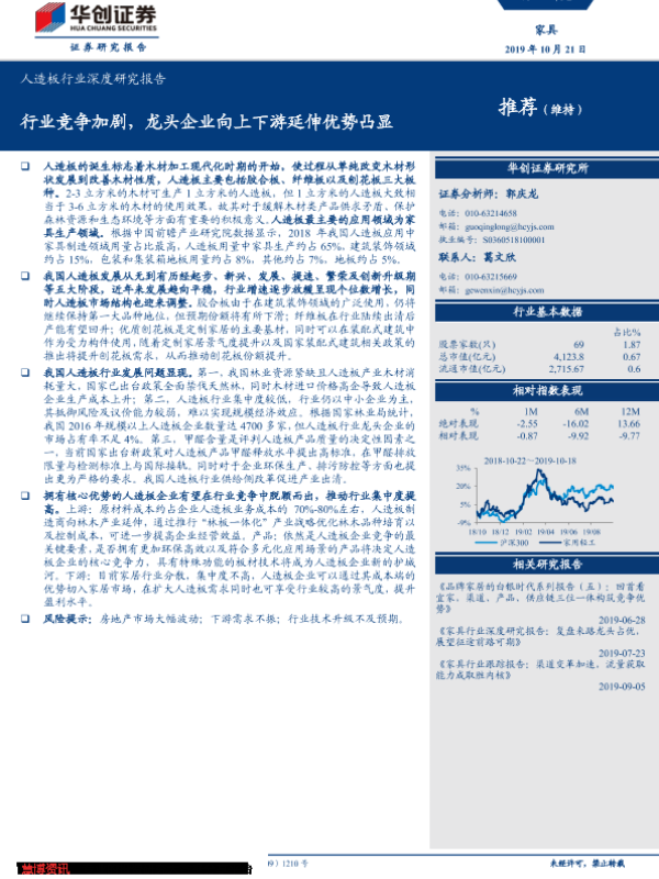 【华创证券】【20191021】20191021-华创证券-人造板行业深度研究报告:行业竞争加剧,龙头企业向上下游延伸优势凸显-23页
