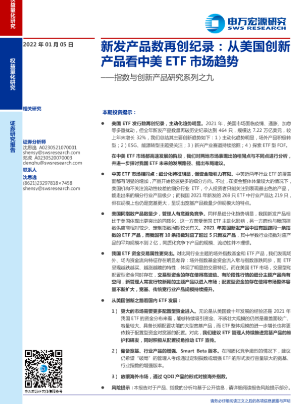 【申万宏源】【20220105】指数与创新产品研究系列之九:新发产品数再创纪录,从美国创新产品看中美ETF市场趋势-26页