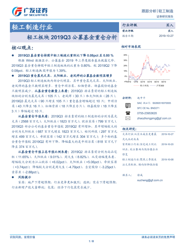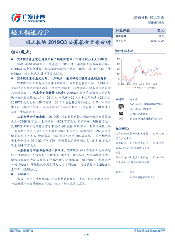 【广发证券】【20191027】轻工板块2019Q3公募基金重仓分析-8页