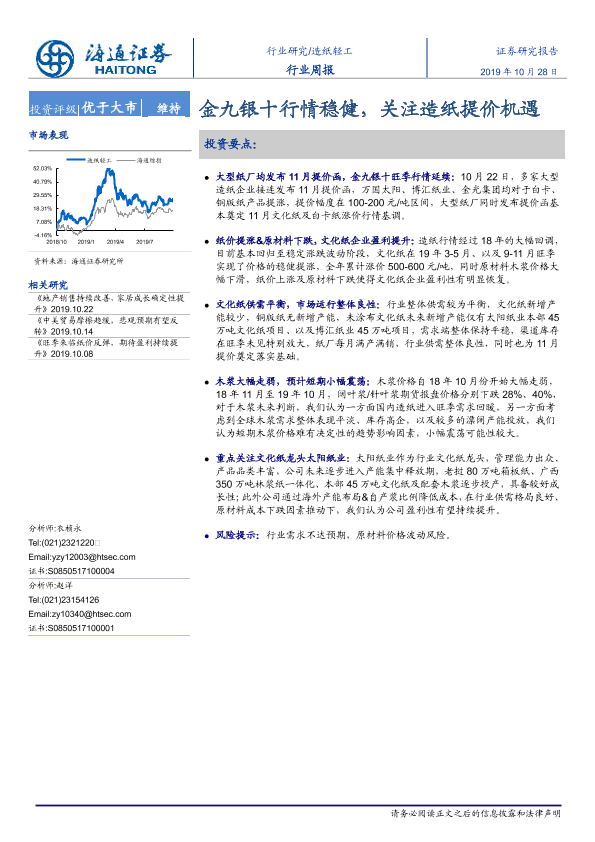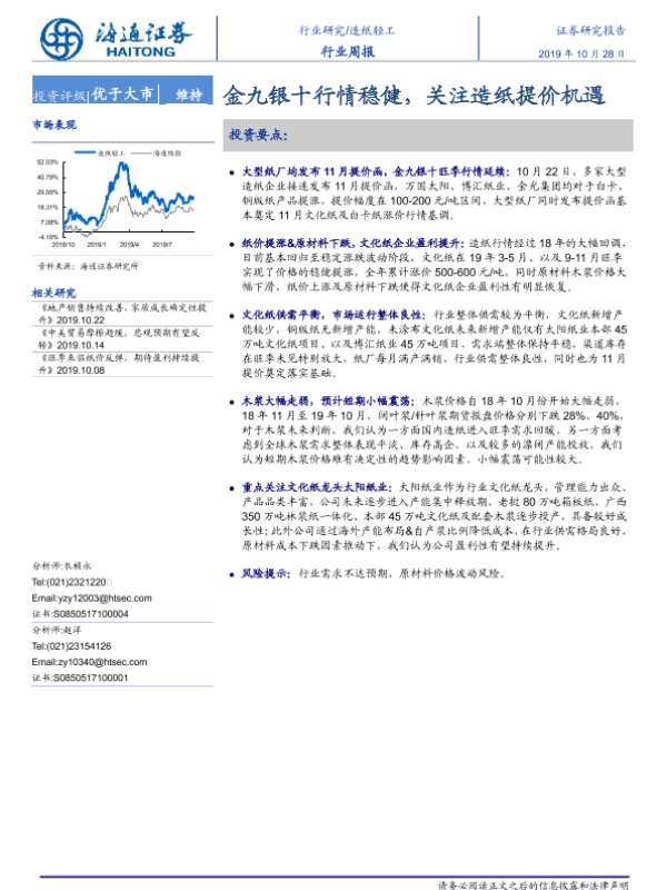 【海通证券】【20191028】20191028-海通证券-造纸轻工行业周报:金九银十行情稳健,关注造纸提价机遇-6页