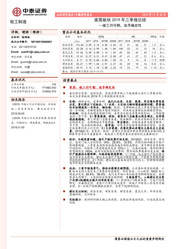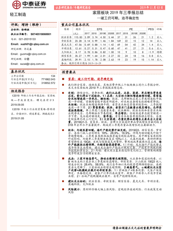 【中泰证券】【20191103】家居板块2019年三季报总结:竣工仍可期,追寻确定性-21页