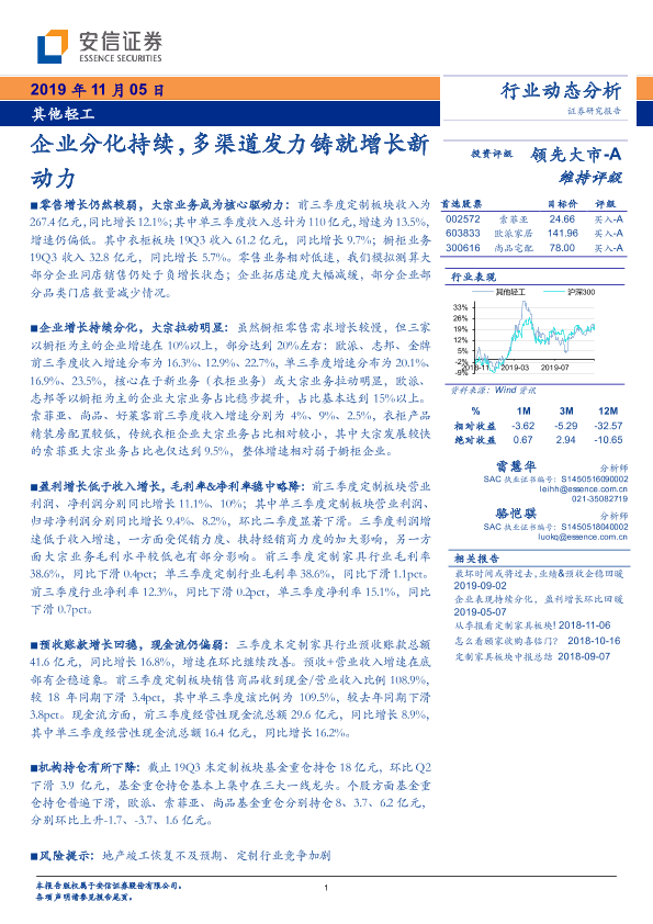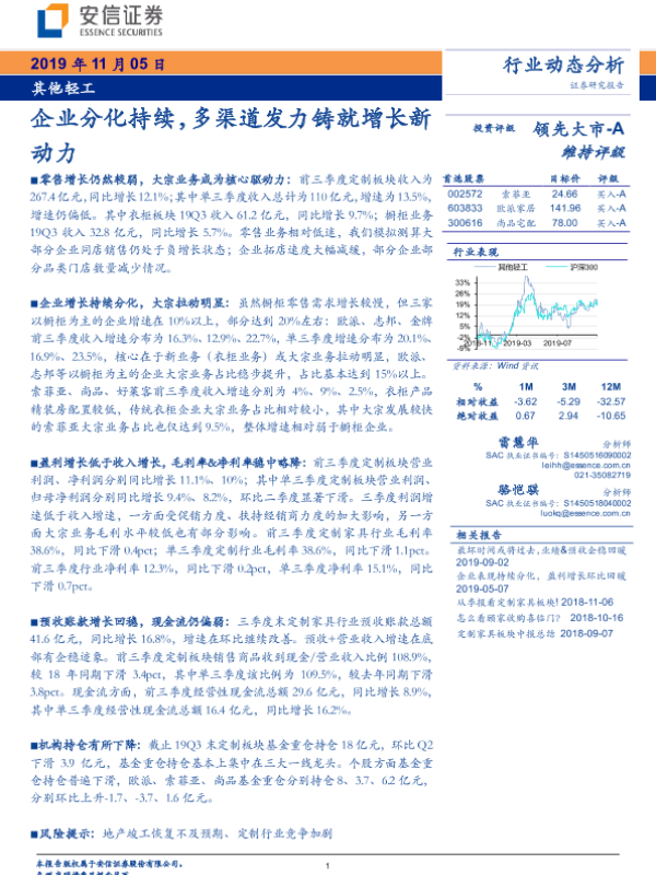 【安信证券】【20191105】其他轻工行业动态分析:企业分化持续,多渠道发力铸就增长新动力-11页