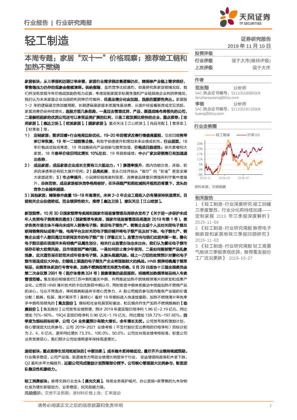 【天风证券】【20191110】轻工制造本周专题:家居“双十一”价格观察;推荐竣工链和加热不燃烧-27页