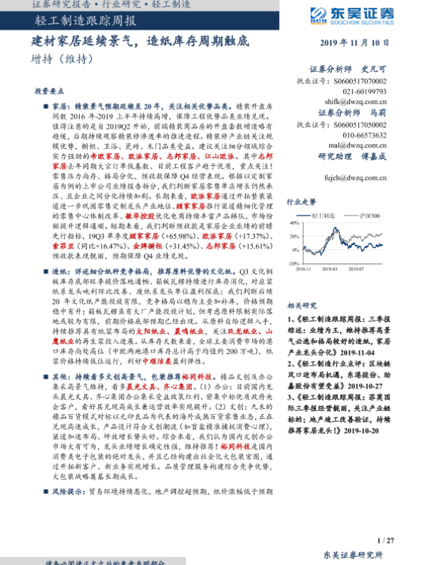 【东吴证券】【20191110】轻工制造跟踪周报:建材家居延续景气,造纸库存周期触底-27页
