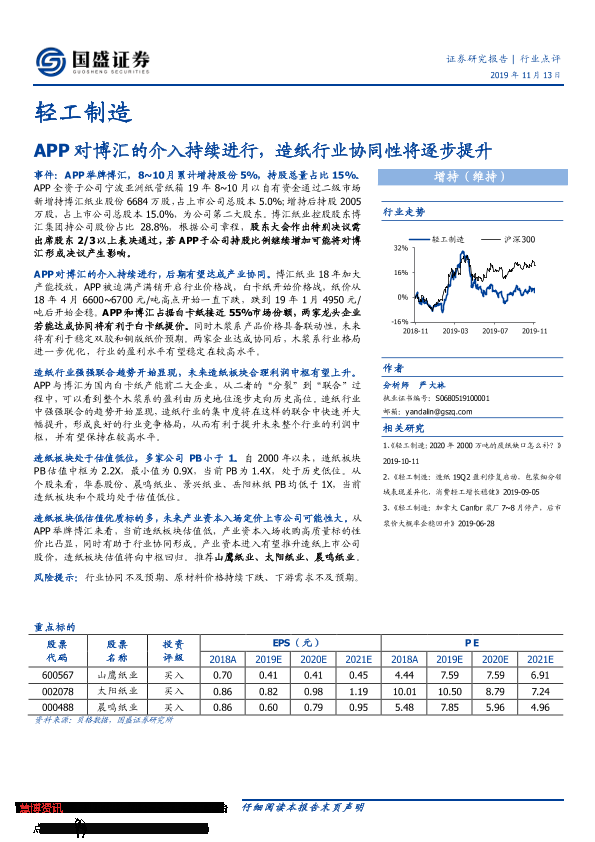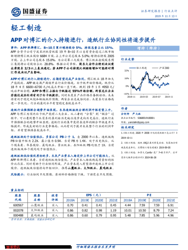 【国盛证券】【20191113】轻工制造:APP对博汇的介入持续进行,造纸行业协同性将逐步提升-2页