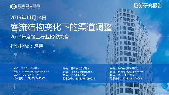 【国泰君安证券】【20191114】2020年度轻工行业投资策略:客流结构变化下的渠道调整-79页