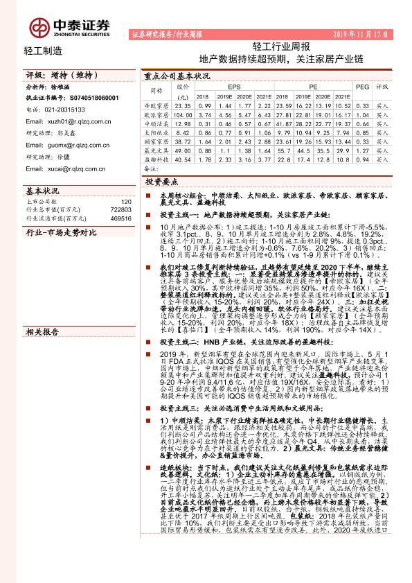 【中泰证券】【20191117】20191117-中泰证券-轻工行业周报:地产数据持续超预期,关注家居产业链-14页