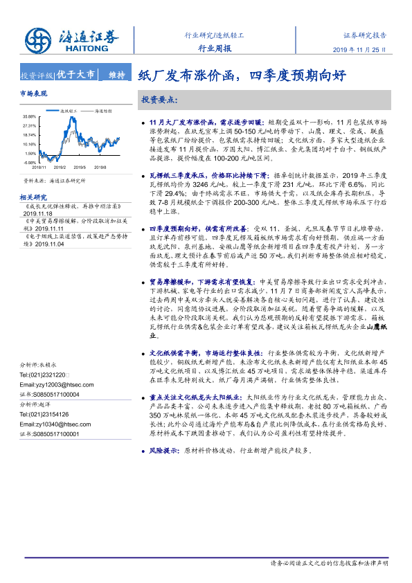 【海通证券】【20191125】20191125-海通证券-造纸轻工行业周报:纸厂发布涨价函,四季度预期向好-6页
