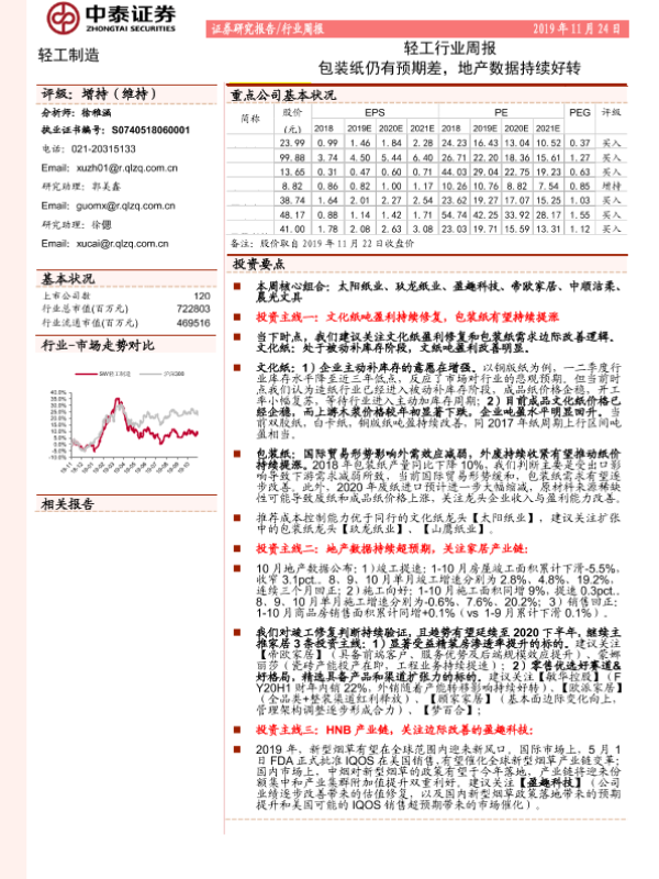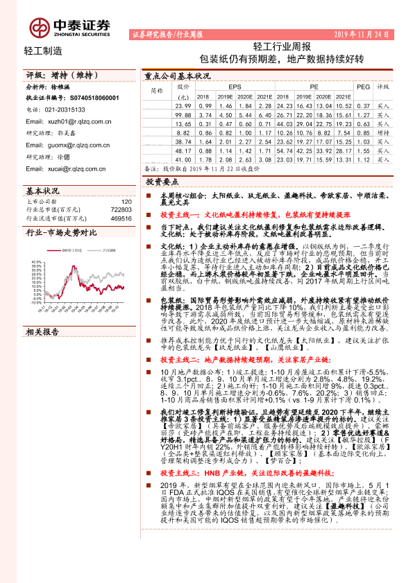 【中泰证券】【20191124】20191124-中泰证券-轻工行业周报:包装纸仍有预期差,地产数据持续好转-14页