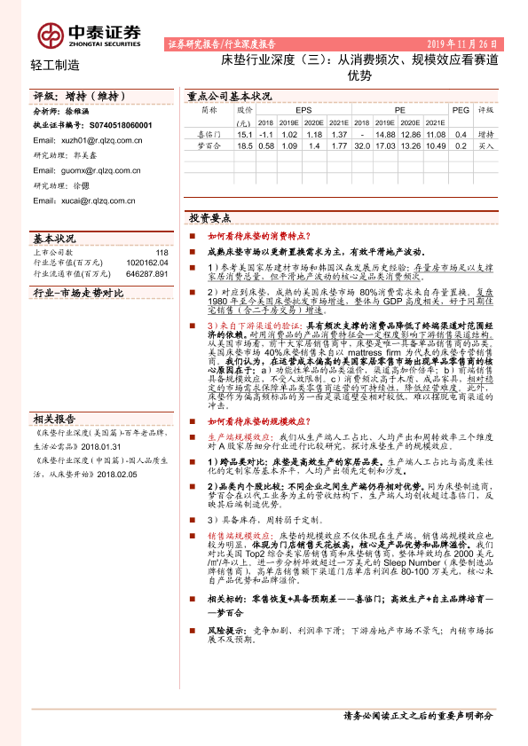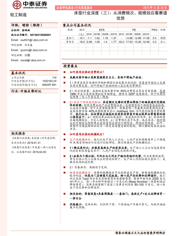【中泰证券】【20191126】床垫行业深度(三):从消费频次、规模效应看赛道优势-13页