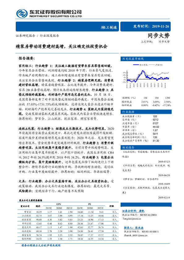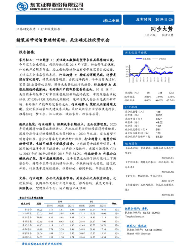【东北证券】【20191126】轻工制造行业深度报告:精装房带动消费建材高增,关注确定性投资机会-34页